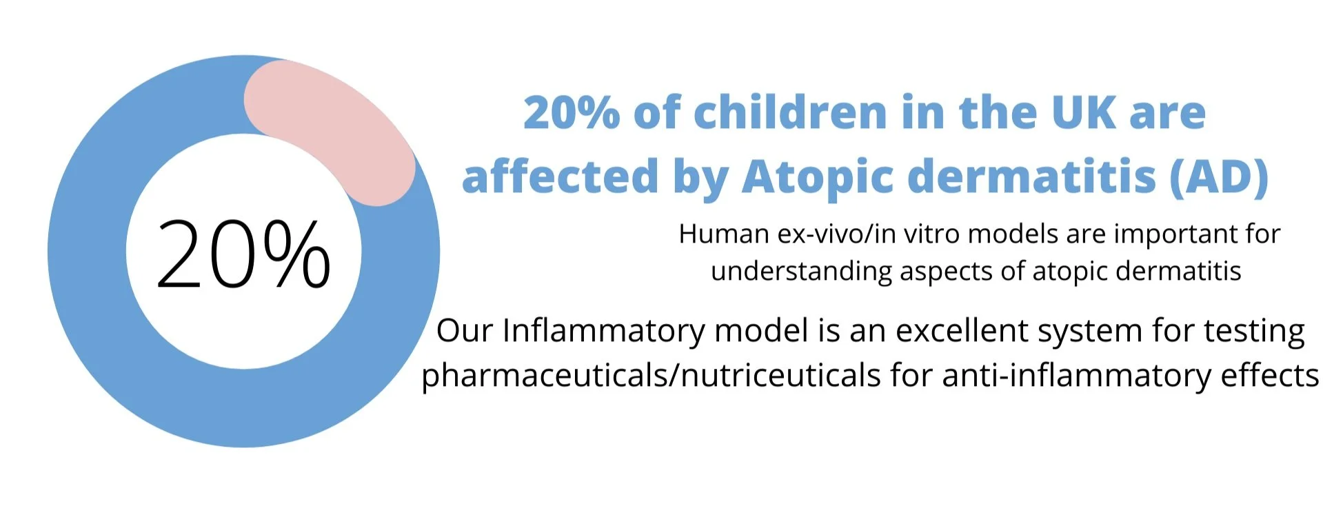 Topical treatments for atopic dermatitis (AD), a chronic inflammatory skin condition affecting up to 20% of children in the UK, include creams to prevent dehydration as well as steroids, which are effective but over-use can have detrimental effects on skin integrity including thinning. People with atopic dermatitis can have reduced quality of life and may be more susceptible to viral and bacterial infections. Human ex-vivo/in vitro models are important for understanding aspects of atopic dermatitis and reconstituted skin as well as in whole skin explants.